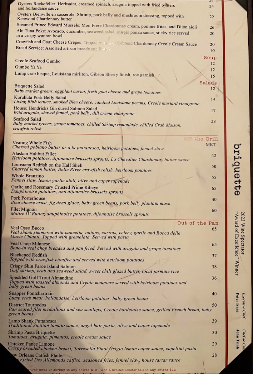 Herbsaint, spinach and arugula cream topped with fried oysters and sauce hollandaise